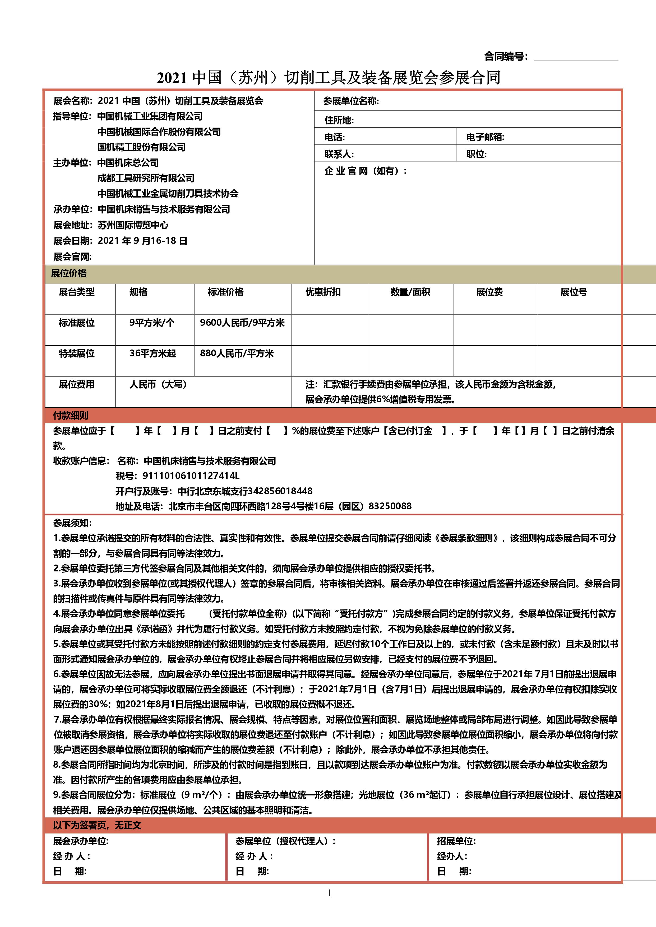 中国切削工具及装备展览会参展合同